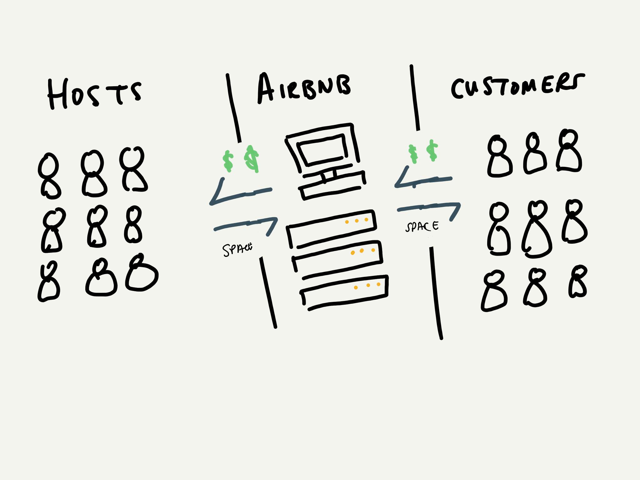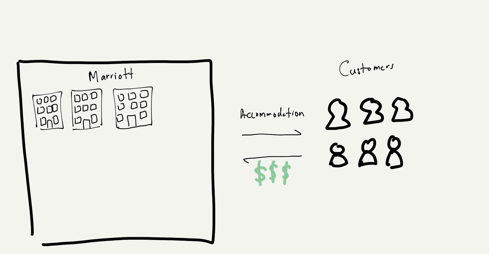 Now, let’s take a look at a modern competitor in Airbnb. Airbnb is a digital platform for both managing and booking lodging. Instead of directly owning properties, Airbnb depends on supply provided hosts and matches it to demand from different customer groups. Hosts with extra property or space available in their current lodging can sublet it through Airbnb, much like the consignment model in retail. They post their inventory onto the platform and wait for a customer seeking accommodation to reach out. Airbnb is the service in the middle, facilitating the transaction. Airbnb is a technology company, but not a software company (defined as a company selling software), as their end-product is simply facilitated transactions. They are a modern marketplace.